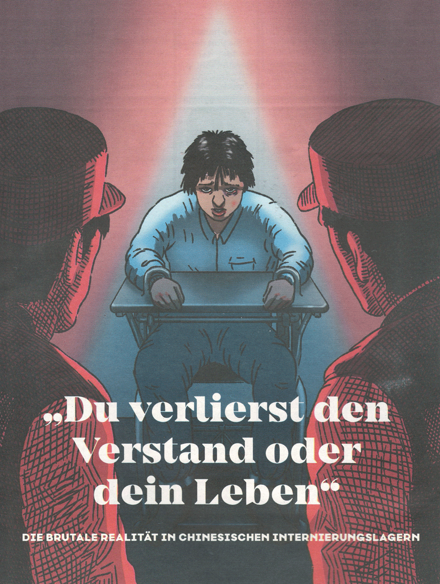 Diese Illustrationen entstanden für einen Artikel über die systematische Verfolgung der Uigur in chinesischen Internierungslagern. Im Mittelpunkt stehen persönliche Berichte von Betroffenen und Angehörigen, die von Gewalt, Unterdrückung und dem Leben in permanenter Angst erzählen. Die Bilder begleiten das Thema visuell und machen die menschliche Dimension hinter den politischen Fakten greifbarer.