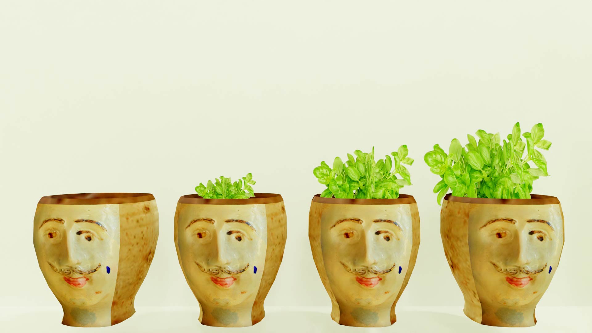 - Sie nutzt den Kopf als Blumentopf und pflanzt Basilikum darin, das außergewöhnlich gut wächst – der Ursprung der bekannten Keramikvasen.