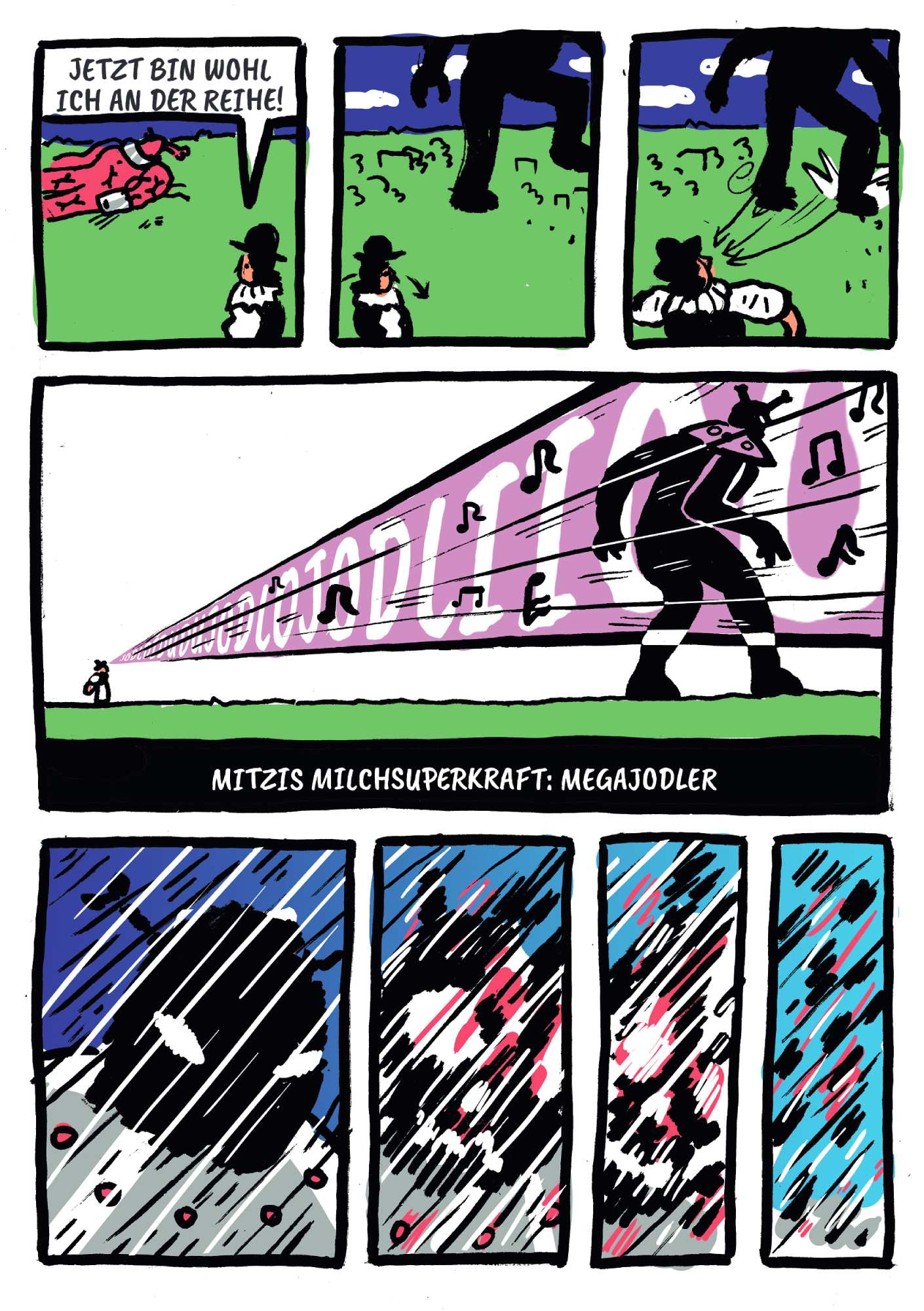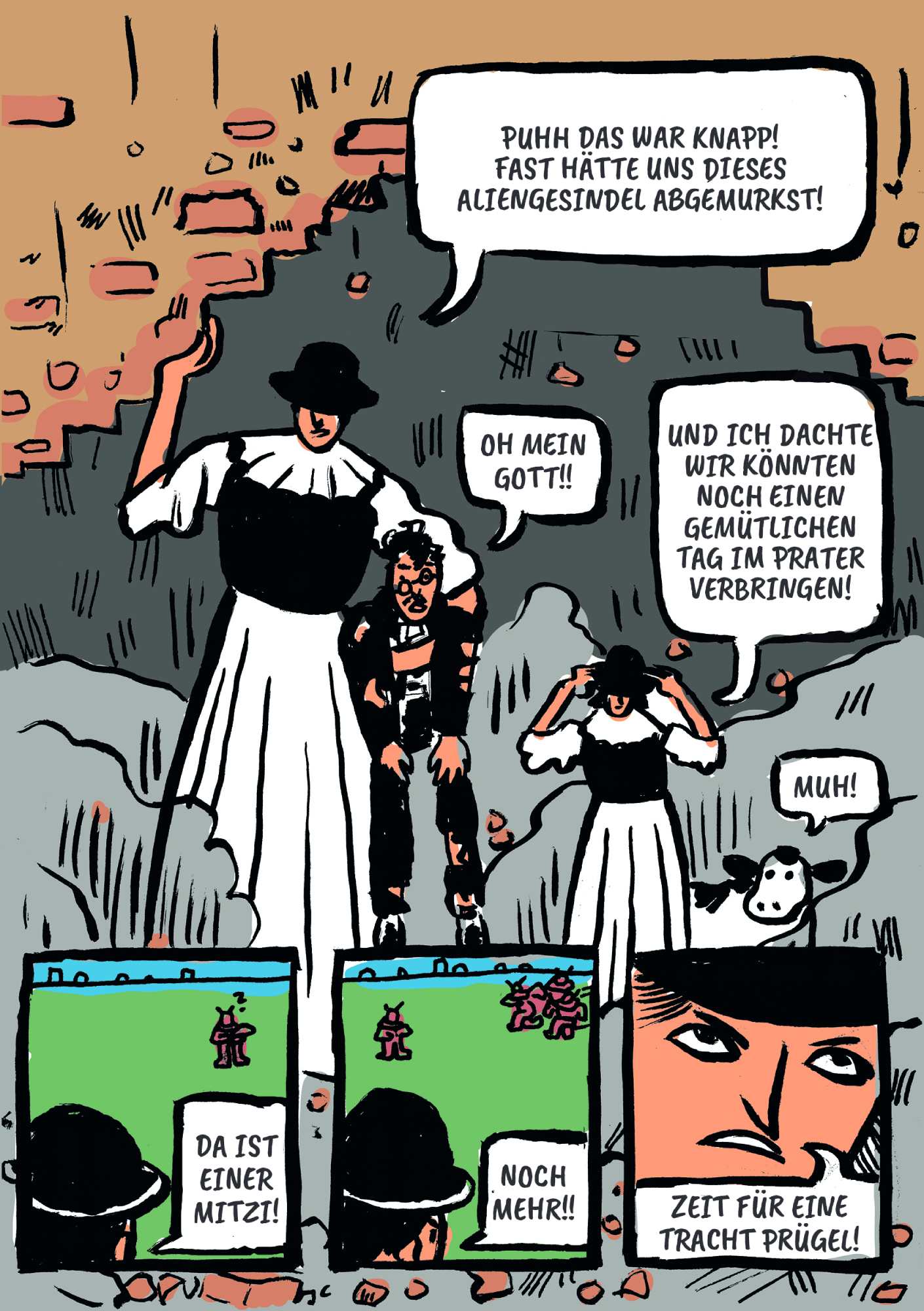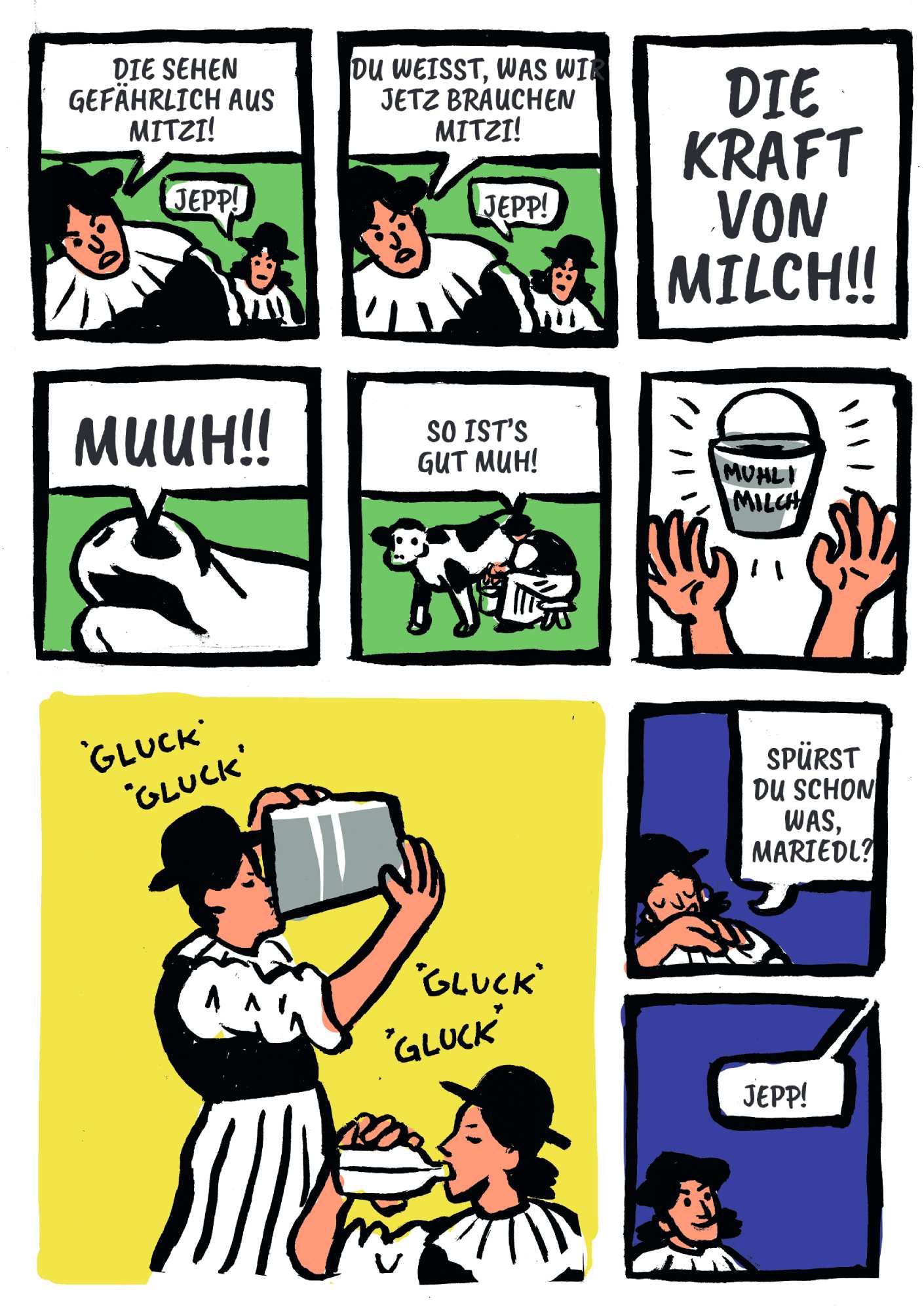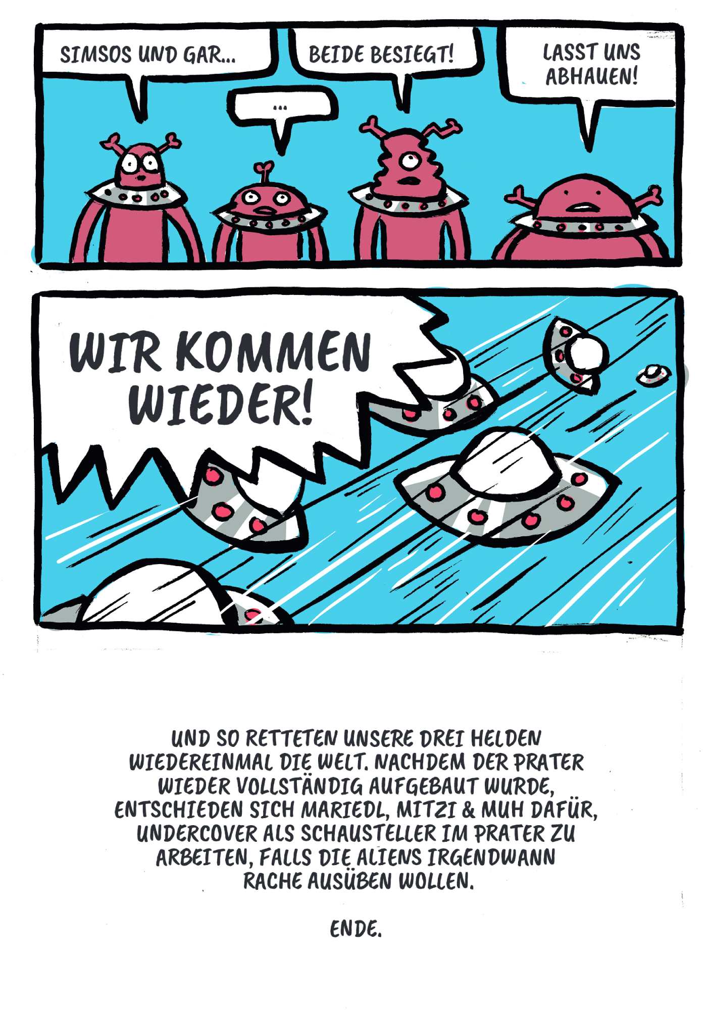 Dieser Comic entstand in Zusammenarbeit mit dem Pratermuseum. Dort wurden die Geschichte des Praters und seine zahlreichen Stars vorgestellt. Eine davon war die große Mariedl, über die ich mich entschieden habe, eine fiktive Geschichte zu erzählen.