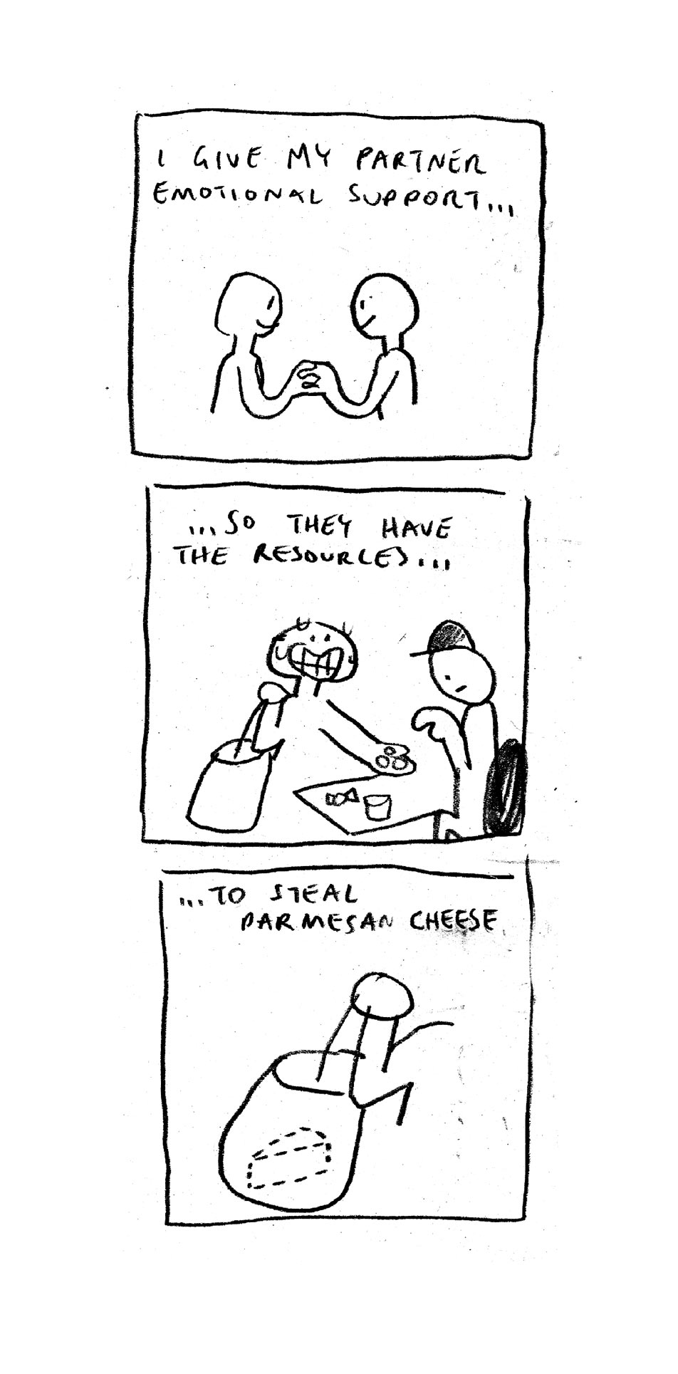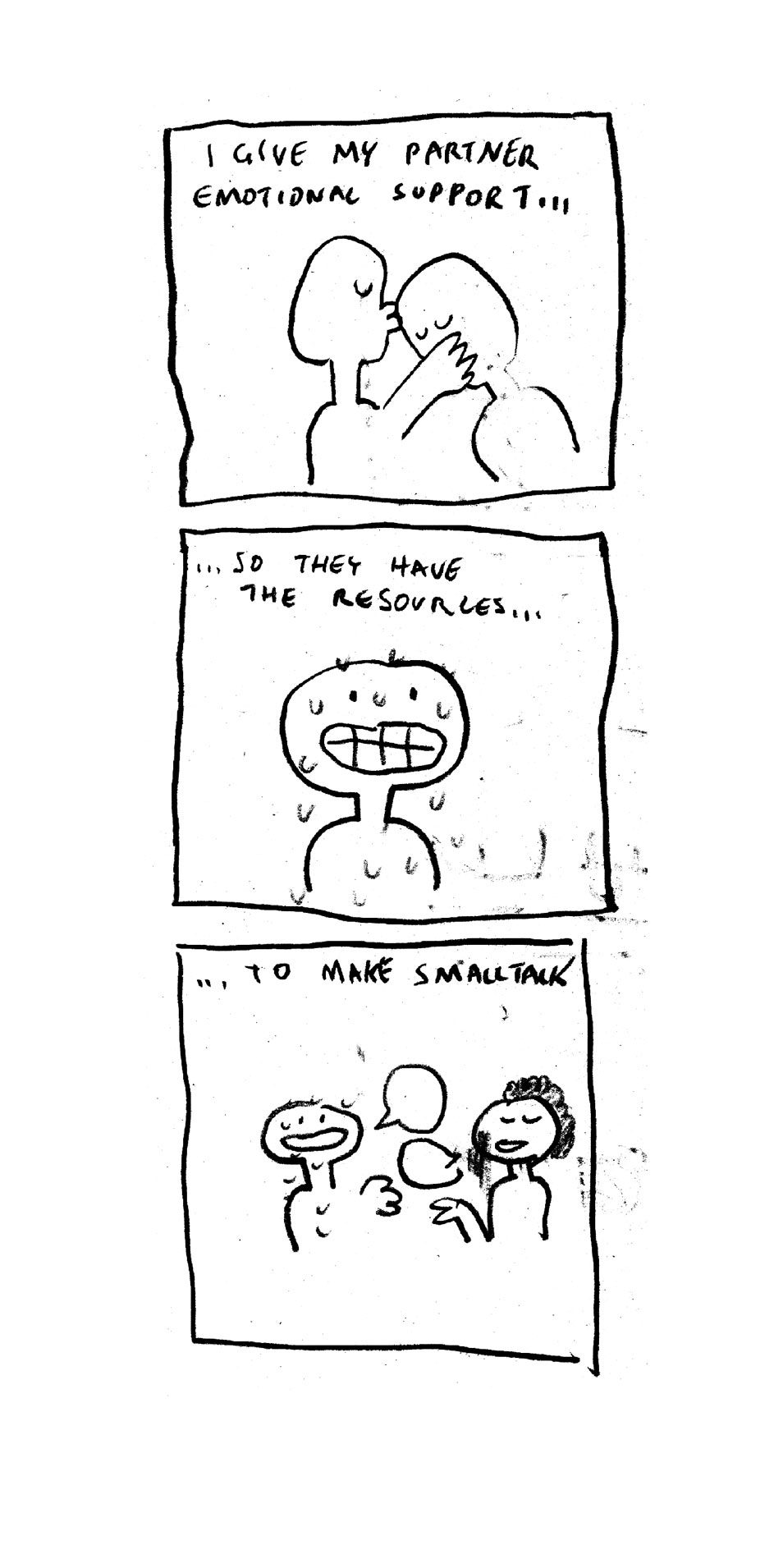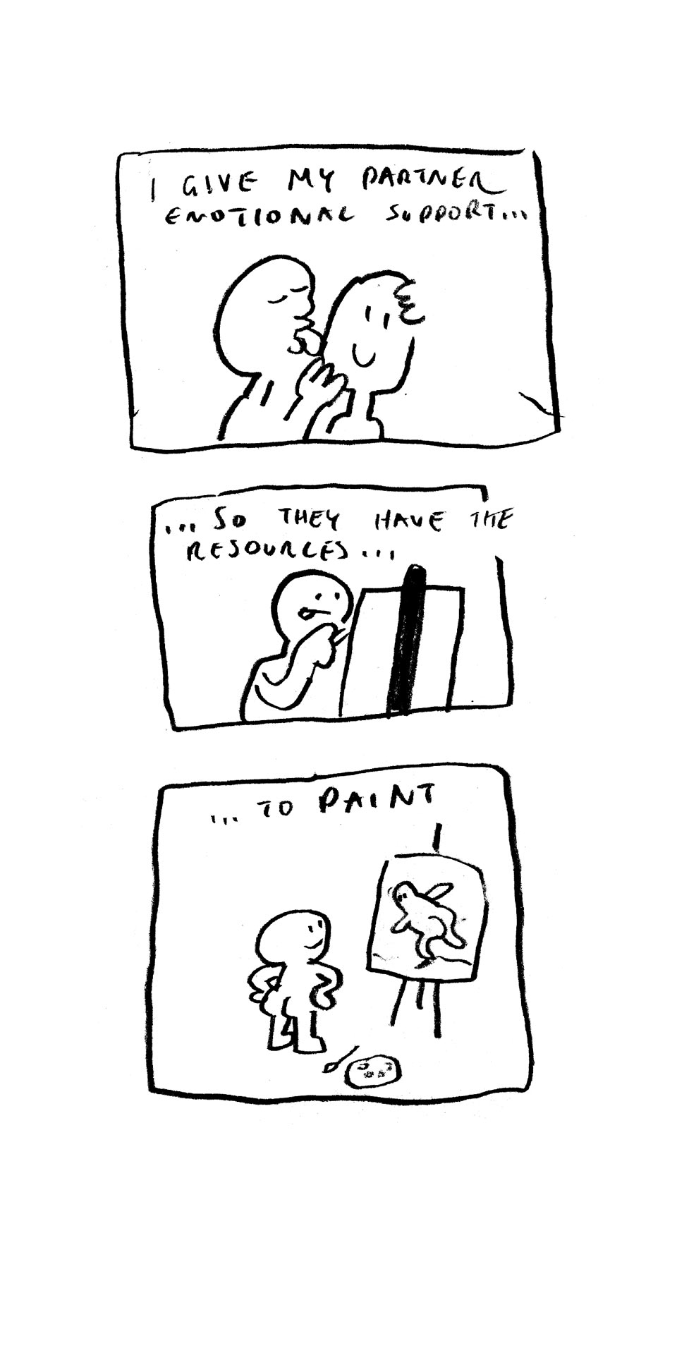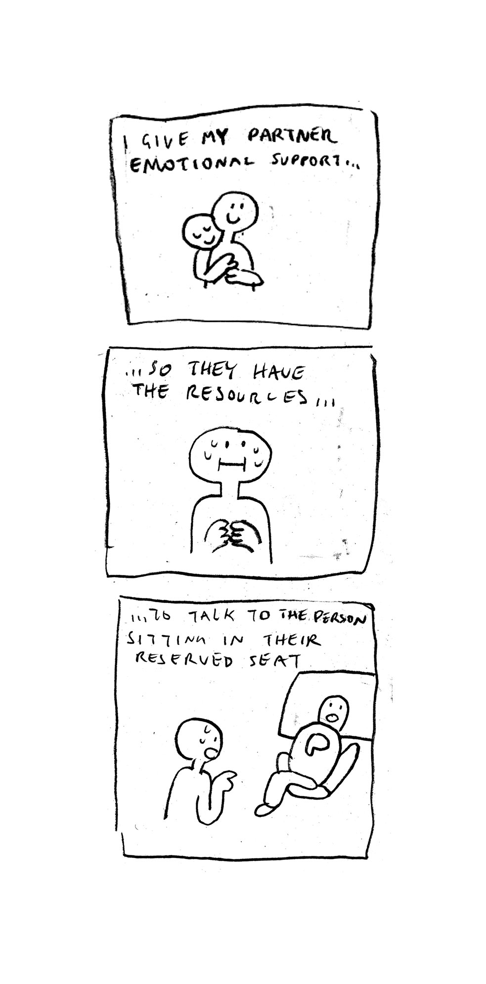 Emotional Support Comics habe ich ins Leben gerufen, um der negativen Algorithmus-Flut auf Instagram etwas entgegenzusetzen und aufmunternde sowie motivierende Botschaften zu verbreiten. Die Zines zählen außerdem bei Art Fairs immer zu meinen Topsellern!